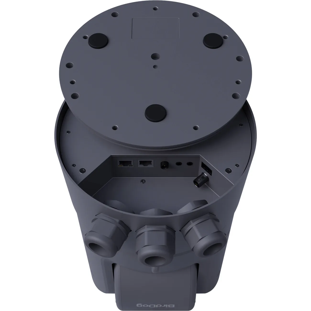 Na rozdíl od běžných venkovních PTZ, které způsobují problémy s řízením kabelů, je O4 navržen s ohledem na instalatéry. Všechny vstupně/výstupní spoje jsou umístěny v skrytém, těsně utěsněném podvozku se třemi přírubami a vestavěným odlehčováním napětí pro čisté a spolehlivé sestavy. Napájení může být dodáváno přes PoE++ pro jednoduchost jednoho kabelu, nebo přes externí DC pro flexibilitu. A pokud potřebujete O4 uvnitř, jednoduše sundejte panel a namontujte ho jako u běžného PTZ.