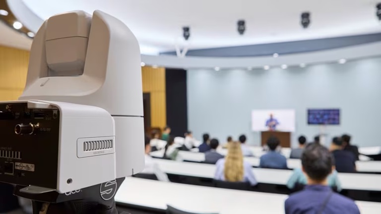 • Pokročilé automatické sledování: Plynulé a inteligentní směrování objektivu udržuje přednášející v záběru, i když se v rámci záběru pohybují.