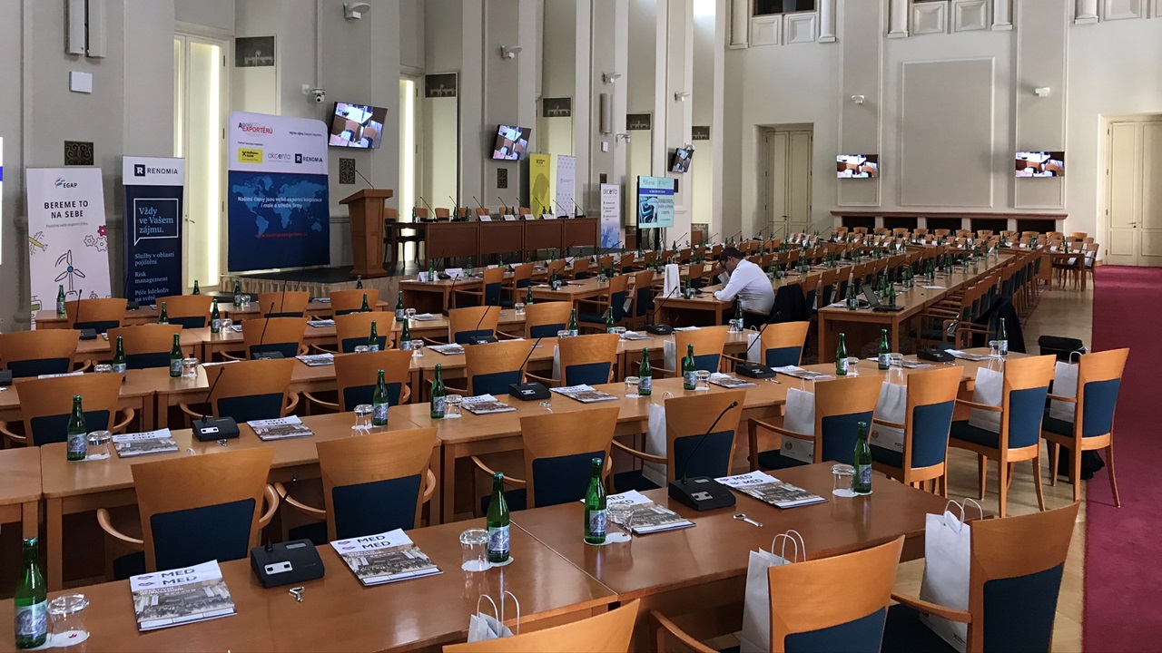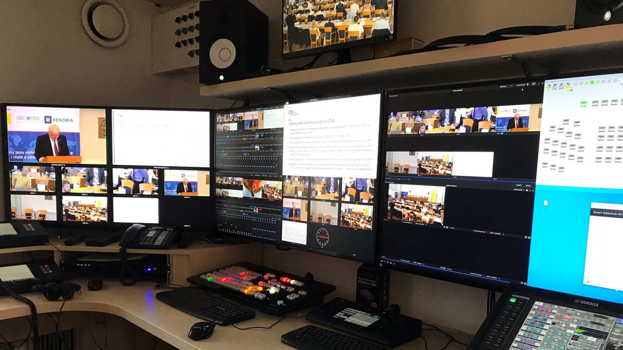Součástí zakázky byl systém IP PTZ kamer, podpořený videostřižnou Tricaster TC1, s kompletními periferiemi pro ovládání a kontrolu signálů, IP distribuce video i audio signálů, překladatelské audio linky provázané do videokonferenčního softwaru,