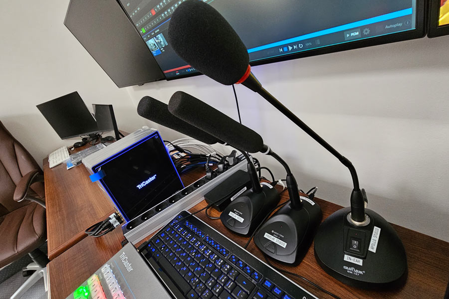 Každé ze studií se projektově se začínalo na naší streamingové sestavě s videorežií Tricaster Mini 4K, Presonus audiomixem a 4 kamerami Minnray UV510 a následně se přidávaly do sestavy další komponenty podle požadavků pro dané studio. Jako například přenosný greenscreen, velká obrazovka pro náhled střihu nebo prezentace s pojízdným stojanem. Největším oříškem bylo instalovat tyto moderní technologie do historických prostor, aby nedošlo k poškození například historické podlahy, křehkého stropu. nebo dřevěného obložení stěn.