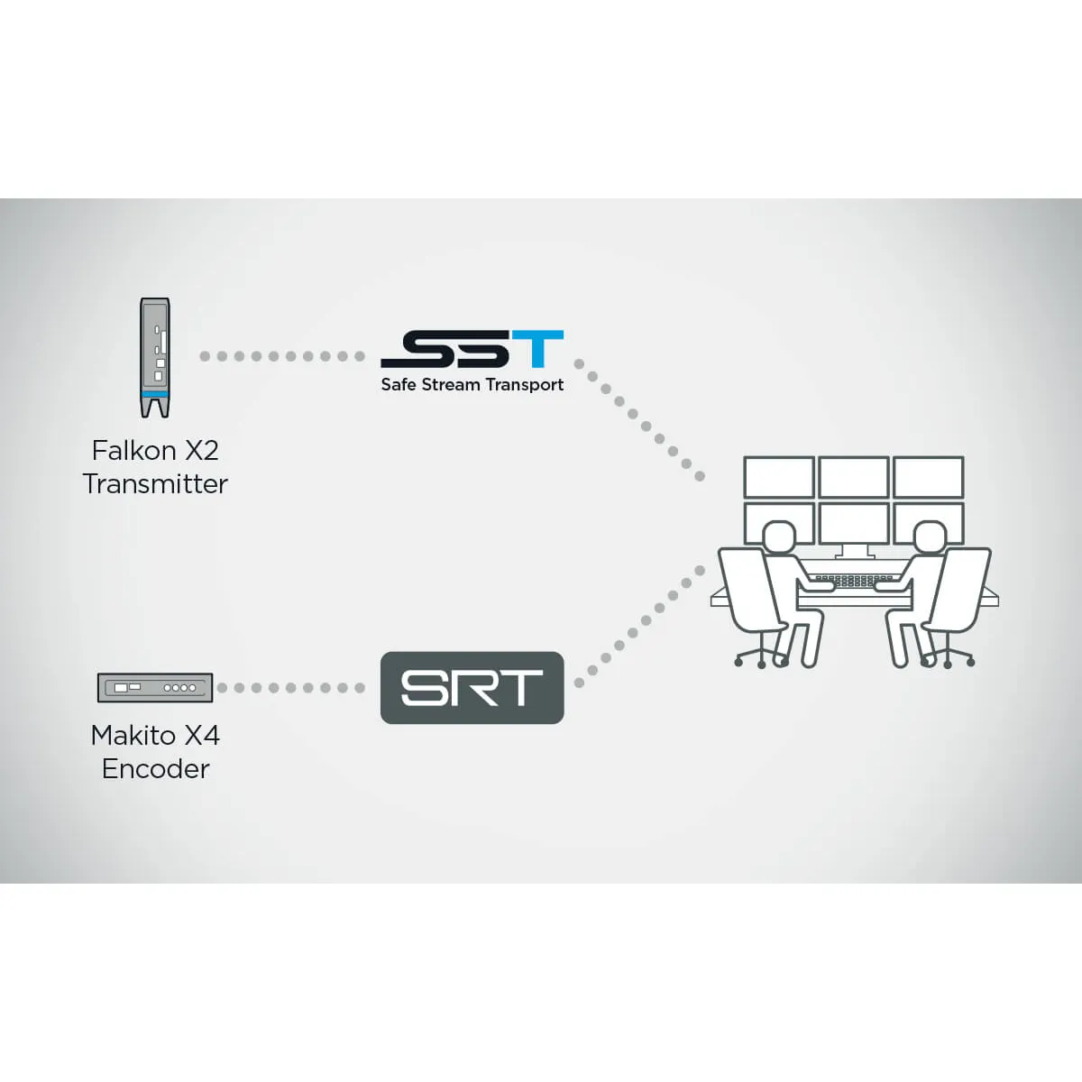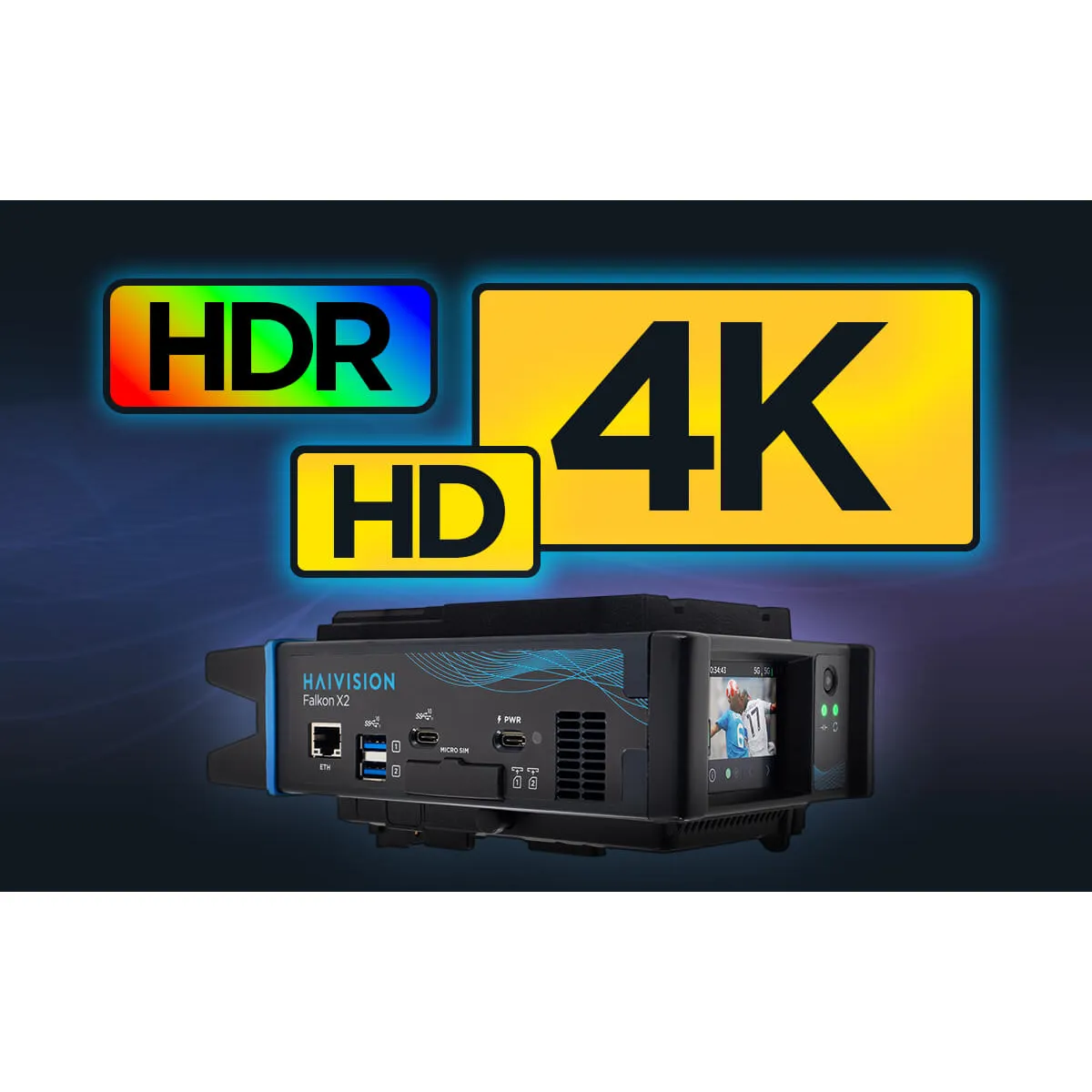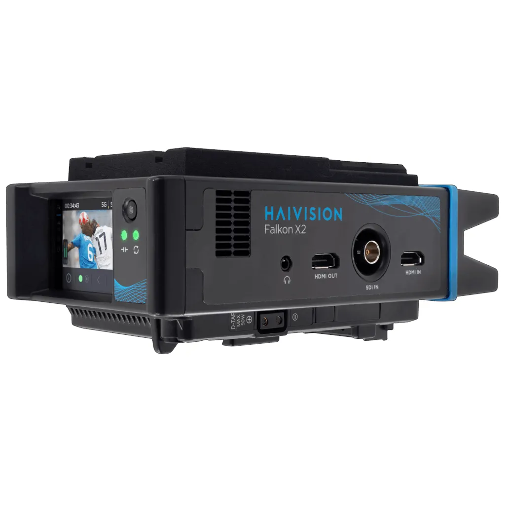 Haivision Falkon X2 je vysílací enkodér a mobilní vysílač pro přenos videa s nízkou latencí v nedotčené kvalitě s rozlišením až 4K UHD přes jakoukoli síť, včetně veřejných i soukromých 5G sítí. Díky bohaté sadě profesionálních vysílacích funkcí, včetně zpětných video signálů, obousměrného interkomu a nahrávání videa, dokáže Falkon X2 kódovat živé video s
