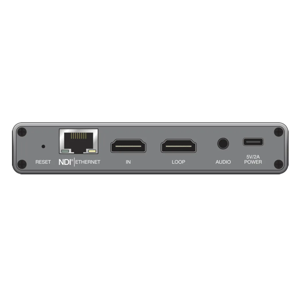 Samostatný HW převodník pro převod AV signálu z HDMI do NDI, který disponuje ethernetovým a HDMI rozhraním. Loop signálu ze vstupu HDMI, USB-C pro napájení 5V/2A. Možnost napájení přes PoE+.